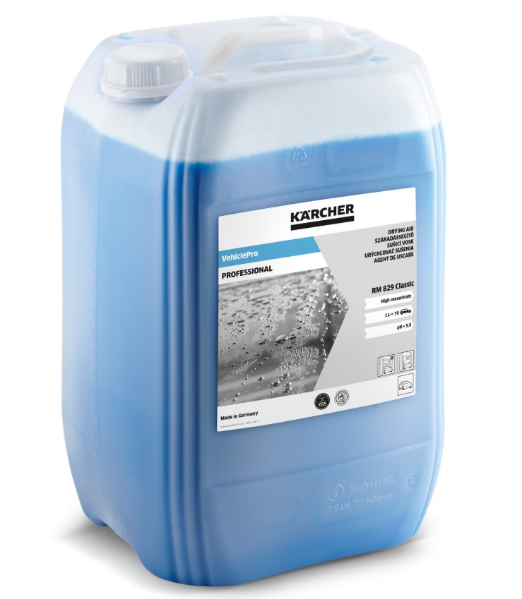 VehiclePro Drying Aid RM 829 Classic to wysokowydajny środek wspomagający suszenie samochodów i pojazdów użytkowych, odpowiedni do stosowania przy dowolnej twardości wody w profesjonalnych myjniach samochodowych. Dzięki zastosowaniu wydajnego osuszacza, preparat szybko rozbija taflę wody na dużych powierzchniach, zapewniając doskonałe efekty suszenia i minimalizując ryzyko powstawania zacieków.